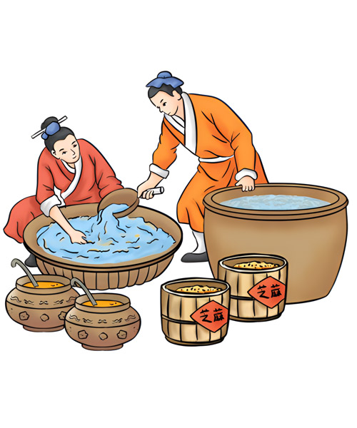 - 芝麻經(jīng)過漂洗浸泡,既清除了芝麻中的并肩泥等雜質(zhì),又讓水分充分滲透到完整細胞內(nèi)部,使凝膠體膨脹,再經(jīng)過加熱炒籽,就可以使細胞破裂,油體原生質(zhì)流出。